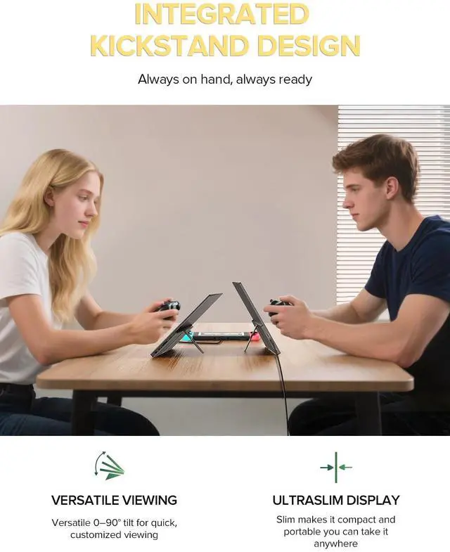 Ultra-Slim, Lightweight & Durable Metal BodyThis slim portable monitor weighs only 1.4 lbs with a 0.3-inch thin aluminum body, combining durability and portability. The built-in adjustable stand allows comfortable viewing angles, making it ideal for business trips, students, travelers, and digital nomads.
