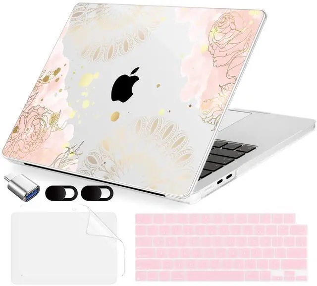 MecBevia Compatible with MacBook Air 15 inch Case, M4 A3241/M3 A3114/M2 A2941 (Released 2025 to 2023), Hard Shell, Keyboard Cover, Screen Protector, Webcam Cover & Type-C Adapter, Vector Flower2