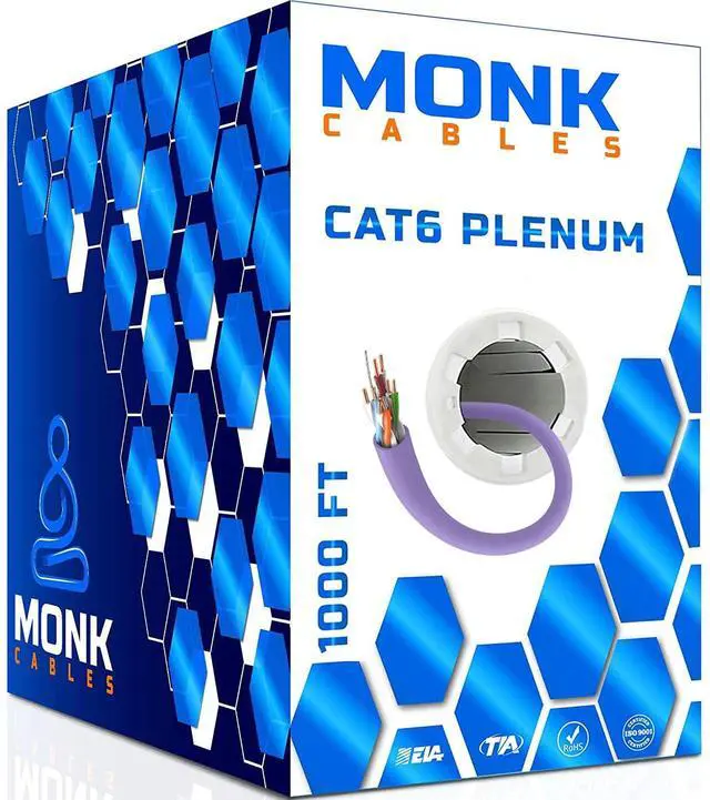 MONK CABLES ^^ CAT6 Plenum Cable 1000ft ^^ UTP, 23AWG, 550MHz ^^ DSX-8000 Certified ^^ Most Certified Cable of The Whole Market (Violet)