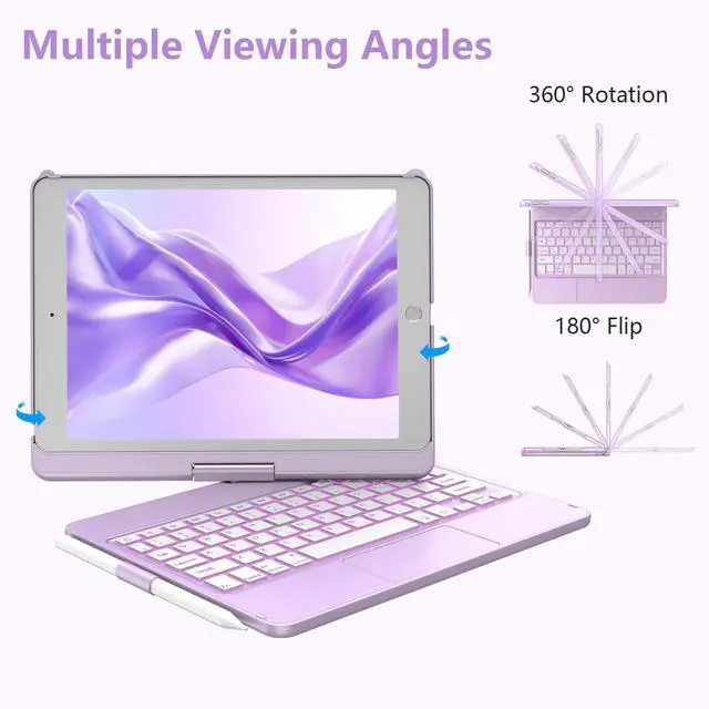 KBCASE Touchpad Keyboard Case for iPad 9th/8th/7th 10.2 inch, Backlit Trackpad Keyboard, 360°Rotatable Case with Pencil Holder for iPad 9th/8th/7th Gen (Light Purple)