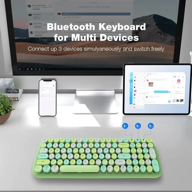 MOFII Wireless Bluetooth Keyboard for Mac, iPad, iPhone, PC, Laptop & Android, Connect up to 3 Devices Simultaneously, Portable 100-Key Typewriter Retro Round Keycaps Keyboard Green