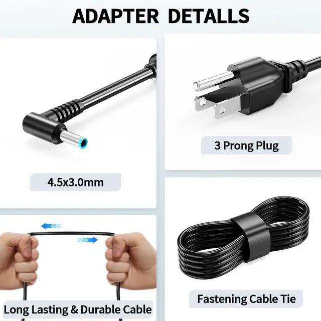 Specification: Input AC 100 ~ 240V 50 ~ 60 Hz O utput 19.5V ~ 6.15A 120W MAX, also compatible with hp 90w laptop charger. C onnector size 4.5 * 3.0 mm blue tip, please confirm the size before place an order.