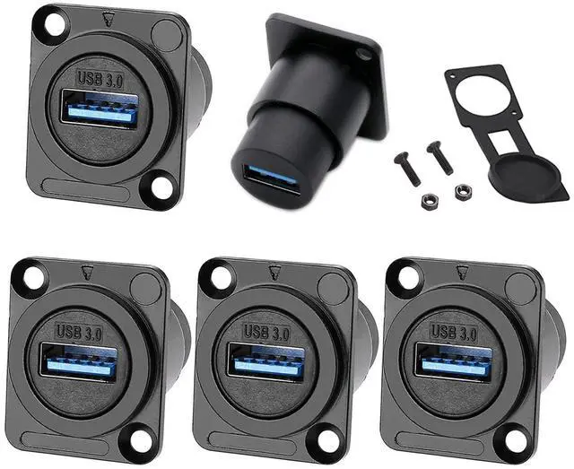 PENGLIN 5PCS USB 3.0 D Series Panel-Mount Connector, Waterproof USB Port Socket 86 Panel Mount Square Female to Female Converter Data Transfer Interface Adapter for Network Industrial Equipment