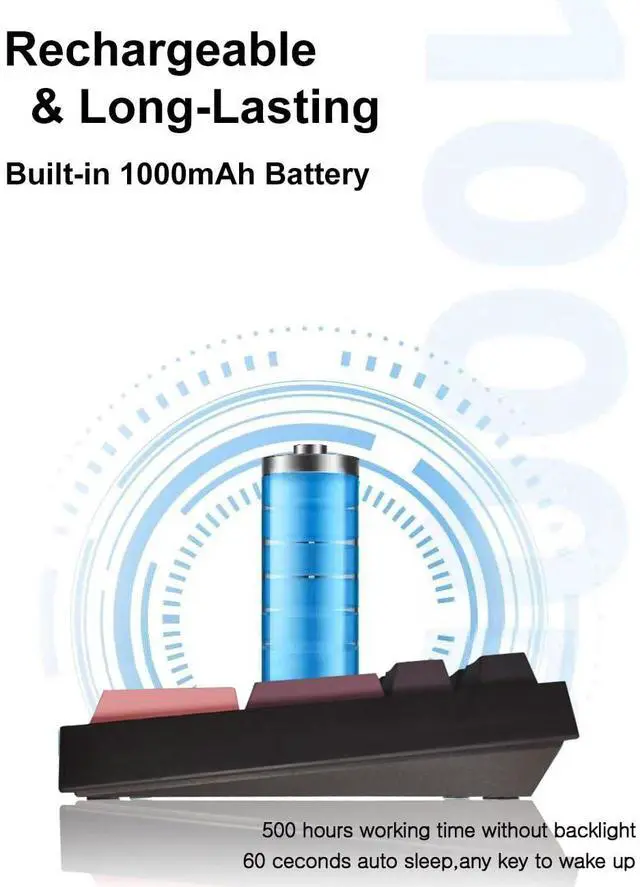 Rechargeable & Long-Lasting: With a high-capacity 1000mAh rechargeable battery, the number keypad can last up to 500 hours without backlight for one time charging. Power switch and auto sleep after 60 seconds for maximum power efficiency, press any key to wake up. The FN key blinks red to remind you of low battery.