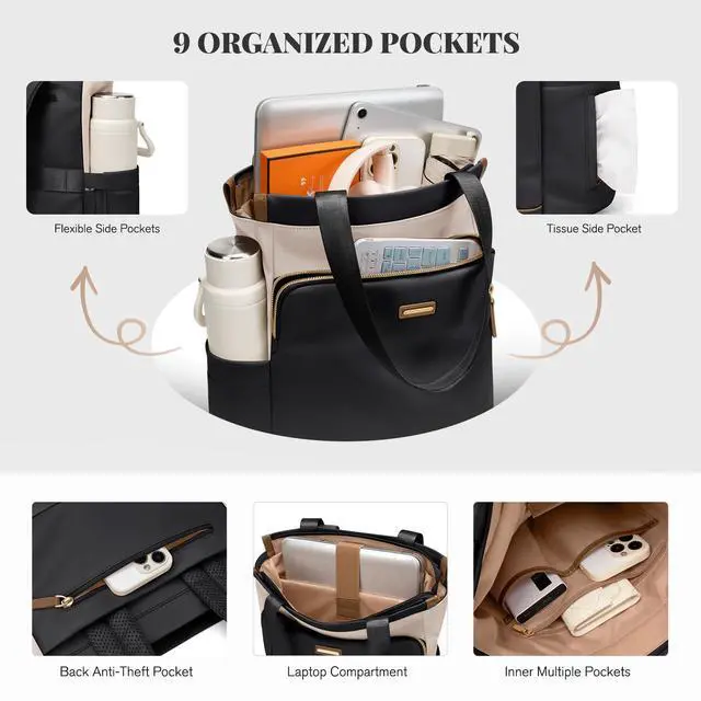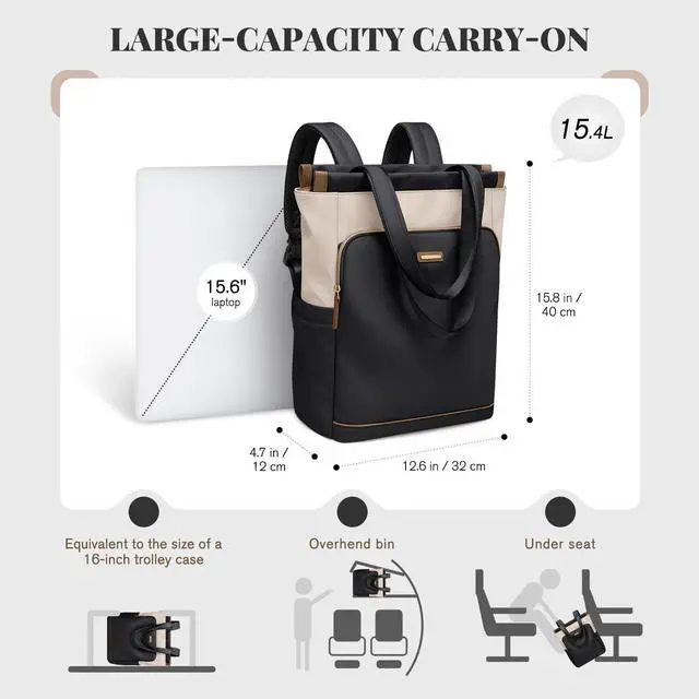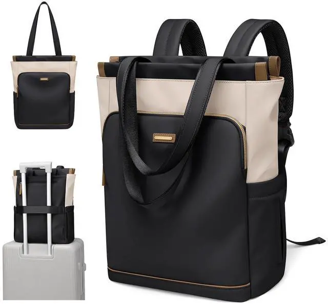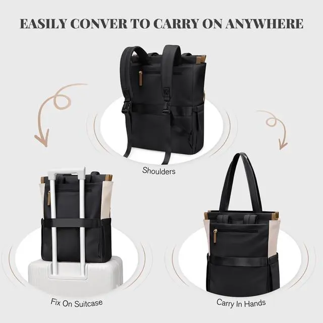 VERSATILE & SECURE TRAVEL COMPANION - Seamlessly transition from work to play with our convertible tote backpack. Wear it as a backpack or carry it like a tote bag, suitable for any occasion. With hidden pockets for shoulder straps, a back zipper pocket, and a luggage strap, our backpack ensures your valuables stay safe and secure while you're on the move.