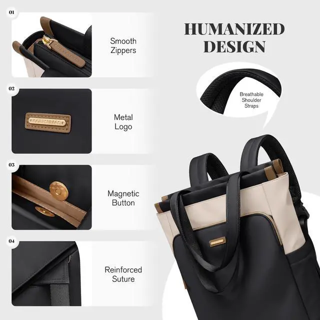 GOLF SUPAGS Convertible Laptop Backpack for Women Casual Daypack Notebook Tote Bag for Work College Travel Leisure (Black & White)