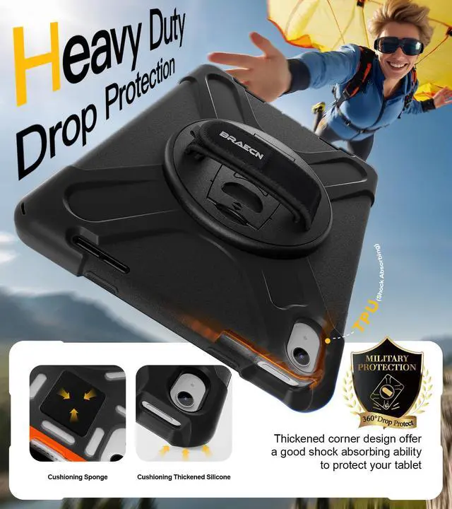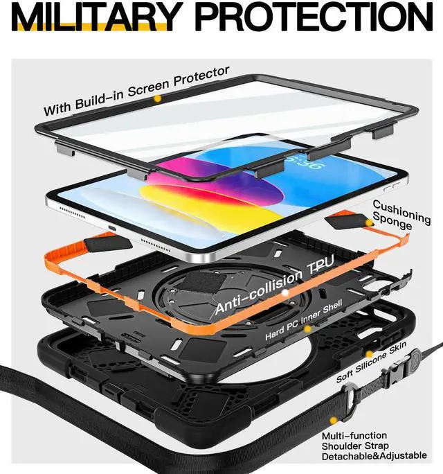 [Full Body Protection &Kids Friendly]:This cover for ipad 11/10 features triple-layer construction and extra orange TPU cushioning strips, the outer silicone layer reinforces the dropproof performance of all four corners, plus there are 4x shockproof sponge pads on the bottom cover to prevent scratches to your tablet.Provides the ultimate in protection and durability, safe for kids to use.