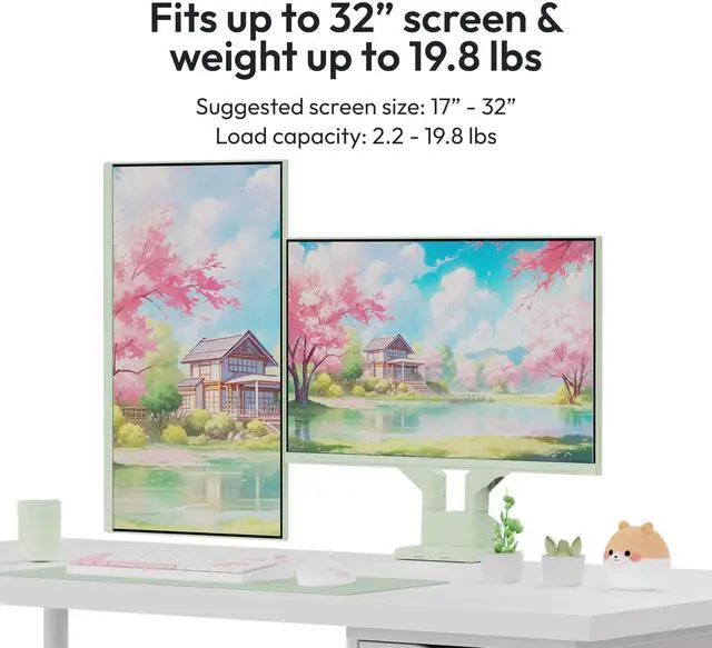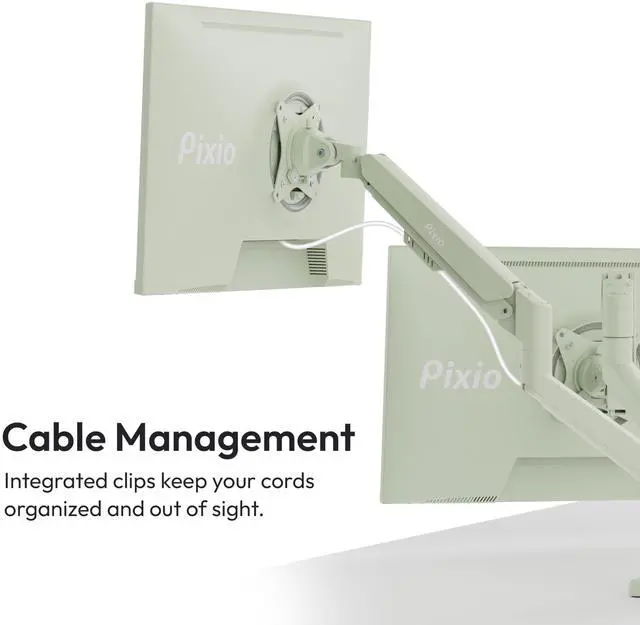 Pixio PS1D Wave Mint Dual Monitor Arm Stand Desk Mount - Fits up to 32 inches Monitors and up to 19.8 lbs. VESA Compatibility and Integrated Cable Management