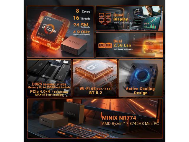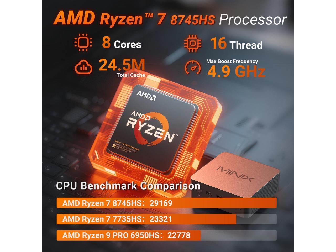 - [Powerful Performance]Equipped with an AMD Ryzen 7 8745HS processor (8 cores/16 threads, up to 4.9GHz), the NR774 Ryzen 7 mini PC delivers robust multi-threaded processing. It effortlessly handles demanding applications, making it a capable gaming mini PC as well. Youll enjoy faster processing, shorter load times, and a significant boost in productivity and entertainmentand it ships ready to use with pre-installed Windows 11 Pro