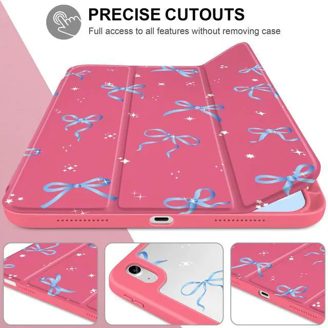 Loyrina Case for iPad Air 11 inch M3 2025 M2 2024,iPad Air 5th (2022) / 4th Generation (2020) 10.9 Inch Clear Back Shell Lightweight Shockproof TPU Trifold Stand Auto Wake Sleep Cute Cover, Ribbons