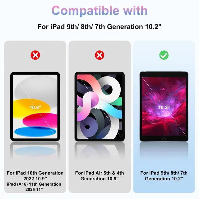 CompatibilityDesigned for iPad 9th Generation 10.2 inch 2021,iPad 8th Generation 10.2 inch 2020 and iPad 7th Generation 10.2 inch 2019 ,[ MODEL: A2270/A2428/A2429/A2430/A2197/ A2198/ A2199/ A2200 ],Please check the model number on the back of the iPad before purchasing Note : Pencil is NOT included