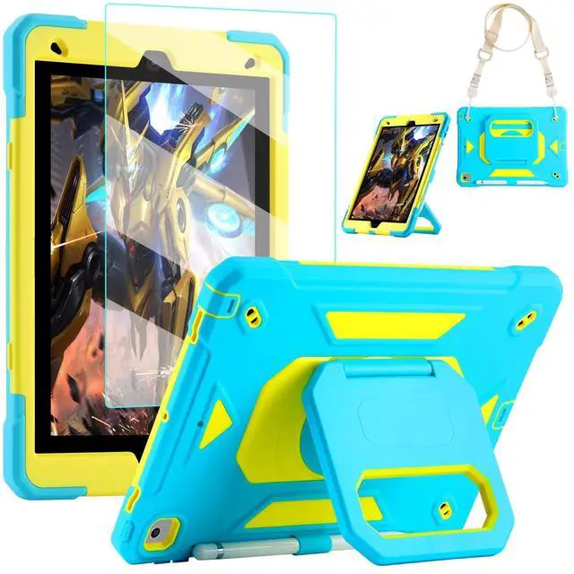 for iPad 9th/8th/7th Generation Case, iPad 10.2 Case 2021/2020/2019, Rugged Heavy Duty Shockproof Protective Kids Case with Screen Protector/360° Rotating Folding Stand/Pencil Holder/Shoulder Strap
