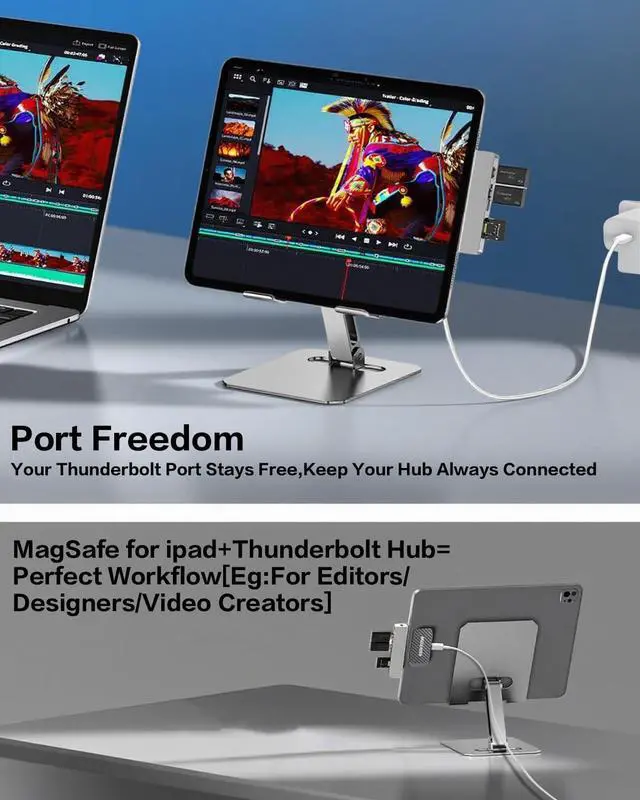 Free Your Thunderbolt Port for What It Does Best Power your iPad wirelessly through the PIN Smart Connector, keeping the Thunderbolt port fully available for high-speed data transfers. This is ideal f