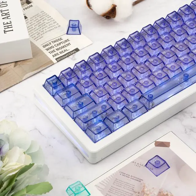 1. Excellent to TouchThis custom keycap set showing a romantic sense of senior color scheme. These purple clear mechanical keyboard keycaps provide top-notch durability and a great feel for your typing, ideal for custom keyboard select