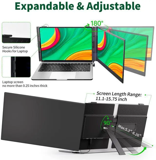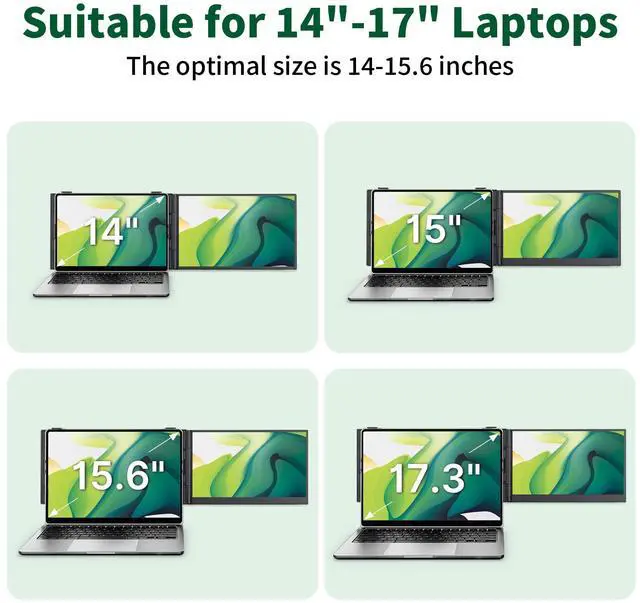 0.17" Ultrathin & Portable: With a thickness of only 0.17 inches and a weight of just 1.3 poundsabout the same as two cans of colaour laptop screen extender is one of the thinnest and lightest on the market. Designed for travel and easy carrying, it fits laptops ranging from 13 inches to 17.3 inches.