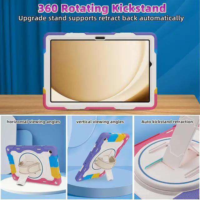 [Unique Kickstand Function] only one type of Samsung Case full body rugged protective durable rubber case supports auto kickstand retraction in the market, you only need to lift the kickstand up gently and then free your hand, done to open/close the kickstand, that allows you and your kids use it much convenience.There is a Stylus Pen Holder on the back to store your pen (Pencil is NOT included)