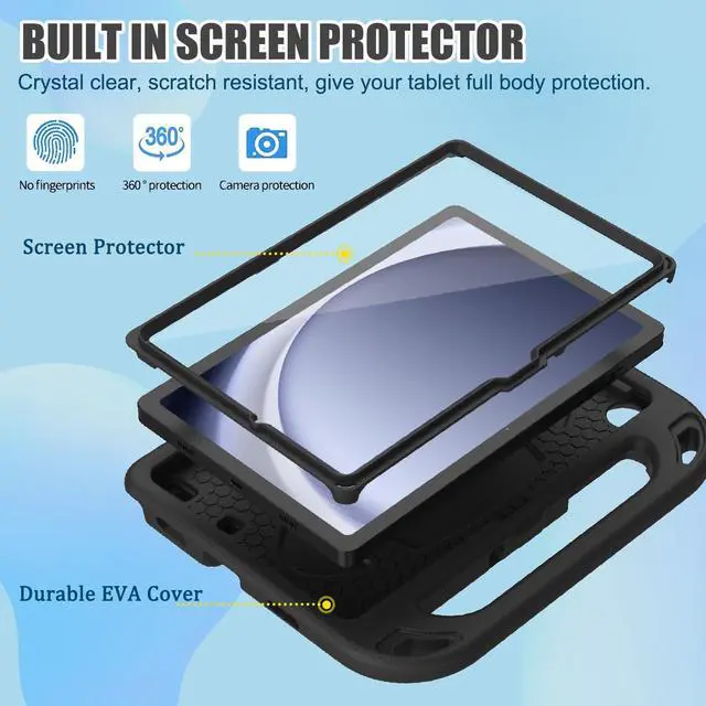Perfect CompatibilityExclusively designed for Samsung Galaxy Tab A9 Plus Case 11 inch 2023 Release (SM X210/X216/X218)), please kindly check the model number on your samsung a9+/a9 plus tablet. ^^ Built-in Screen ProtectorSamsung Galaxy Tab A9 Plus Case, with built-in screen protector, protect samsung tab a9 plus 11" 2023 tablet screen from damage and scratches without affecting sensitivity. ^^ Full Body ProtectionSamsung Galaxy Tab A9 Plus Case for Kids, made of shock-absorbing EVA material, light weight yet durable, provides decent protection for samsung tab a9+/a9 plus tablet 2023. ^^ Accurate Cutouts Snug FitGalaxy Tab A9 Plus Case for Kids, with accurate cutous ensure easy access to all buttons, ports, sensors, speakers and camera.