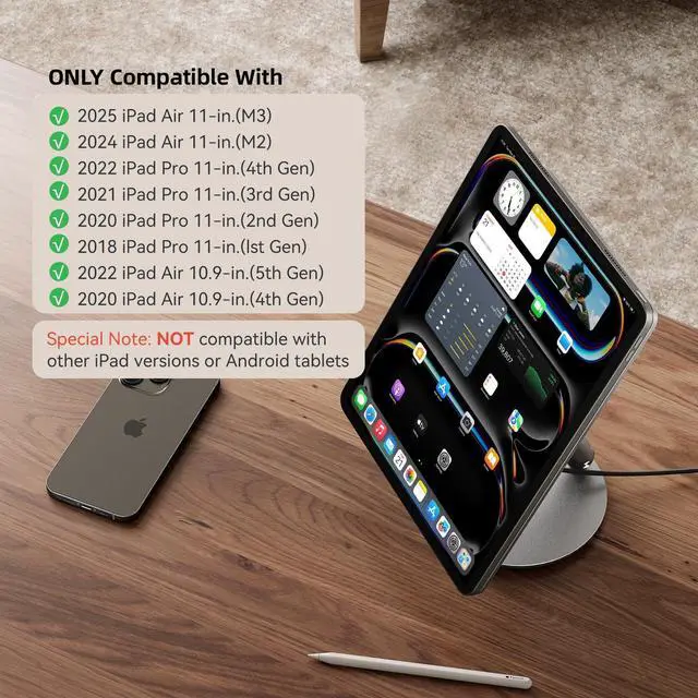 KU XIU Magnetic Wireless Charging Stand for iPad Pro/Air 11 M2 Only, Aluminum Alloy Arm Mount with 1M Cable, Foldable Adjustable Tablet Holder for iPad Pro 11 1st/2nd/3rd/4th,Air 10.9 4th/5th