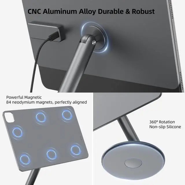 KU XIU Magnetic Wireless Charging Stand for iPad Pro/Air 11 M2, Foldable Aluminum Alloy Tablet Holder Mount for Desk, Adjustable Tablet Stand for iPad Pro 11 1st/2nd/3rd/4th, Air 10.9 4th/5th