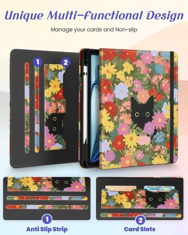 Auto Sleep/Wake: This for iPad Air 11 inch case 2025 & 2024/for iPad Air 5th/4th gen case/for iPad Pro 11 inch case is made of premium PU leather and soft TPU material for protection. This for iPad Air 11 inch case/for iPad Air 5th/4th generation case/11 inch for iPad Pro case also has an auto sleep/wake function for extended standby time ^^