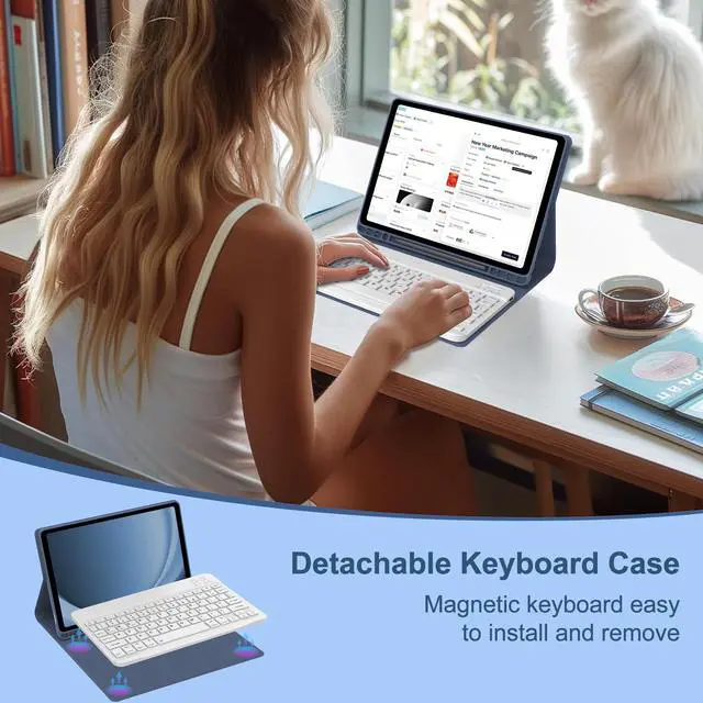 Model (SM-X210/X216/X218) NOTE: This keyboard case is not suitable for S9 11 inches, S9 FE 10.9 inch. ^^ MULTI-VIEW ANGLES CASEThe Samsung A9 plus tablet case keyboard has multiple viewing angles, you can choose your optimal angle to use your tab. Type, sketch, view and readif you need to get something done on your tablet, choose from four versatile use modes to get it done. ^^ MAGNETIC DETACHABLE WIRELESS KEYBOARD - The keyboard layout is specifically customized for 11-inch tablet A9 Plus. The detachable magnetic wireless Bluetooth keyboard can turn your tablet into a high-performance and easy-to-use laptop or your favorite drawing board. The buttons adopt ergonomic and aesthetic design, give your hands a comfortable and clean touch. Scissors mechanical keyboard feels quiet and smooth. ^^ STABLE BLUETOOTH CONNECTION & PRECISE CUTOUT CASEConvenient and fast Bluetooth connection allows you to use the galaxy tab A9+ Plus case with keyboard anywhere, anytime. And its keys are quiet and comfortable. Precise cutout allows full access to all ports: user interface, sensors, speakers, microphone and cameras. ^^ RECHARGEABLE KEYBOARD WITH LONG BATTERY LIFEThe Samsung A9 Plus tablet case keyboard adopts the more general type-c interface, charging for 2-3 hours, and can work continuously for up to 70 hours under normal use. Galaxy tab A9+ Plus case with keyboard comes with power-saving mode, long periods of non-use will enter the hibernation state. ^^ BUILT-IN S PEN HOLDERThe galaxy tab A9 Plus 5g case keyboard with S Pen slot for daily storage, never worry about get lost. ^^ ALL ROUND PROTECTIONThe galaxy tab A9 Plus case with keyboard made of soft TPU and flexible TPU inner shell, which are drop-proof and scratch resistant, also not slippery or stick while carrying it around, perfect all-around protection for your precious tablet. ^^ AUTO SLEEP/WAKE FUNCTIONThe samsung galaxy A9 Plus tablet case with keyboard automatically locks or unlocks your screen when the lid is opened or closed in CASE ONLY mode to conserve battery life and keep all the important things you may be working on safe. ^^ 100% SATISFACTIONThis samsung tab a9 plus case with keyboard with shockproof TPU inner, protect your tablet from scratches, the keyboard keys has resilient, making typing more sensitive and accurate.