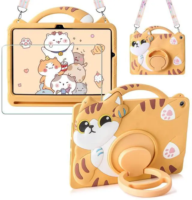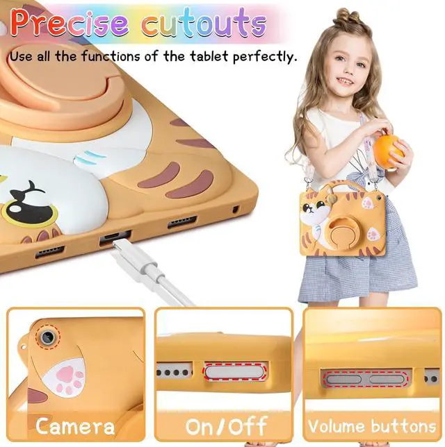Note: It will not be compatible for other model devices. Please check your model before purchase. This product includes 1x tablet case, 1x shoulder strap, 1x screen protector. ^^ Tempered Screen ProtectorThis for samsung galaxy tab a9+ 11 inch case for kids with screen protector, which made of hardness tempered glass, protects the screen from bumps dust and scratches, dust, shocks reducing damage to the screen for samsung galaxy tab a9+ 11 inch case, provides a strong protection to the tablet. ^^ Cute Kickstand & Lanyard Kids galaxy tab A9 plus case for new galaxy tab A9 plus case 2023, Multifunctional design is useful. Galaxy Tab A9 Plus Case with handle stand, 360 rotation, 180 folding, making it easier for you to read, watch, or face videos with friends. And provide more flexible and comfortable angles for your viewing or typing, ideal for watching videos, office working and class learning, standing steady and help free your hands ^^ Precise CutoutsHigh-quality silicone material brings a soft touch to this for samsung galaxy tab a9+ 11 inch case, light weight, shock proof, no worry of any drop even from as high as 3 feet.