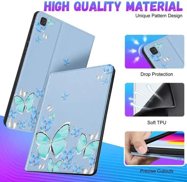 Full ProtectionThis for galaxy tab s6 lite case is made of premium durable PU leather and soft TPU. So this for samsung galaxy tab s6 lite 10.4 case is stain resistant, the high-definition printing process makes it less likely to fade. ^^ Auto Sleep/WakeBuilt-in magnetic strip, this for samsung s6 lite case with the smart funtion of auto sleep/wake, no wasting the power energy and extend your tablet standby time. ^^ Unique DesignThis for samsung tablet s6 lite case has multiple stylish designs, makes your tablet look more vivid and adurable, it is also a good choice for family and friends.