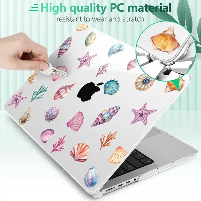 Yebiseven for MacBook Pro 14 Inch Case M5 M4 M3 M2 M1 2025 2024-2021 Model A3434/A3112/A3401/A3185/A2918/A2992/A2779/A2442,Hard Shell with Keyboard Cover+Trackpad Film+OTG Adapter, Sea Shells