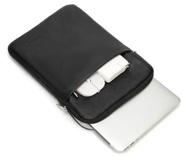 This laptop sleeve is designed to protect your laptop from scratches, dust, and other damages. The Kinmac 360 Protective Vertical Style Waterproof Laptop Sleeve with Pocket features a durable and water-resistant exterior, made from high-quality PU leather. The interior is lined with a soft and fluffy fleece lining, providing additional protection for your laptop. The sleeve also features a pocket on the front, perfect for storing your documents, wallet, or other small accessories. It is easy to carry and use, and is perfect for travel, business, or work.