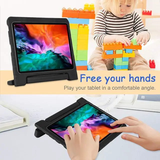 Features: * Made of lightweight sturdy child friendly and kid safe EVA foam to guard your iPad Pro at home or in the classroom. * Anti-slip soft outer layer case provides great handling and extra cushion for impact protection. * Easy-to-grip, large handle designed to comfortably hold with smaller children's hands. * The handle is also a kickstand with 2 viewing positions for watching movies & typing. * Perfect for all families with children, no worry to break the tablet by wild kids.
