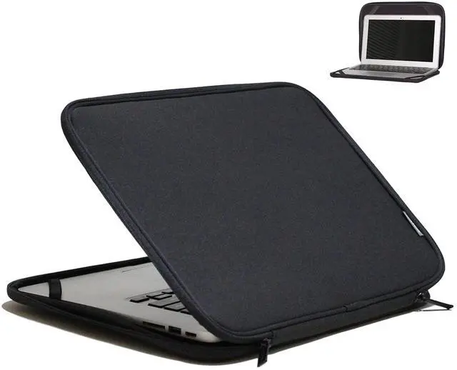 Internal: 12.9 x 9 x 0.8 inches, External: 13.4 x 9.5 x 0.9 inches. (Don't fit Chromebook 14 inch) ^^ CONVENIENCE AND MATERIALS - The slim and lightweight design makes it easy to carry on its own or slip into a shoulder bag or backpack. The exterior and interior are made from soft fabric, providing a smooth touch and excellent protection against laptop scratches. It also features a layer of high-density foam in the middle for added impact protection. ^^ ENHANCED SAFETY - The edges of the laptop case are reinforced with sturdy materials, providing 360-degree protection to your laptops sides from external impacts and scratches. ^^ THE INNTZONE ADVANTAGE - Use Your Laptop Without Removing It from the