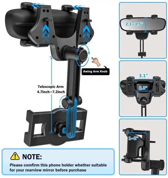 Super Locking Design4 corners clamps are more stable than 3 corners clamps because the 4 corners is more evenly stressed, and the fixed slider of the yooz 5th generation wing mirror tablet holder for car has been upgraded, it can firmly fix the mirror frame and keep the car mirror clip stable even on bumpy roads. ^^ Flexible and AdjustableNew version multifunctional car tablet clamp adopts a 360rotating structure, Switch between horizontal and vertical screens at will. The arm length 7.2 inch rotatable and retractable, you can swivel the phone/tablet to any angle so that you can get the best viewing angle.