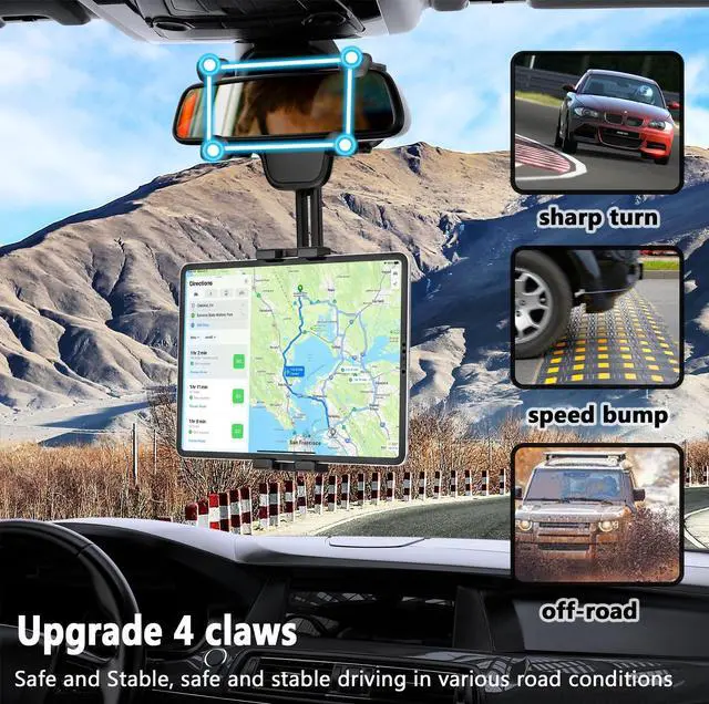 ^^ Never Block the Line of SightThe car back mirror tablet clip is installed on the rearview mirror of your car and can be adjusted freely, so that your sight is always on the road. No need to look down at the navigation and enjoy a more comfortable and safer user experience. ^^ Universal CompatibilityTruck mirror ipad mount works with all 4- 12.9 inch devices, with or without case including for the new 2022 / 2021 iPad Pro 11/ 12.9 inch, iPad 10.9, iPad Air 5, iPad Mini 6/ 5/ 4/ 3, iPad Pro 9.7 / 10.5, 2020 iPad Pro, iPad 5th/ 6th/ 7th/ 8th/ 9th/ 10th generation, accessories, Galaxy Tab, Switch, iPhone 15 14 13 12 Pro Max, and other smartphones, tablets.