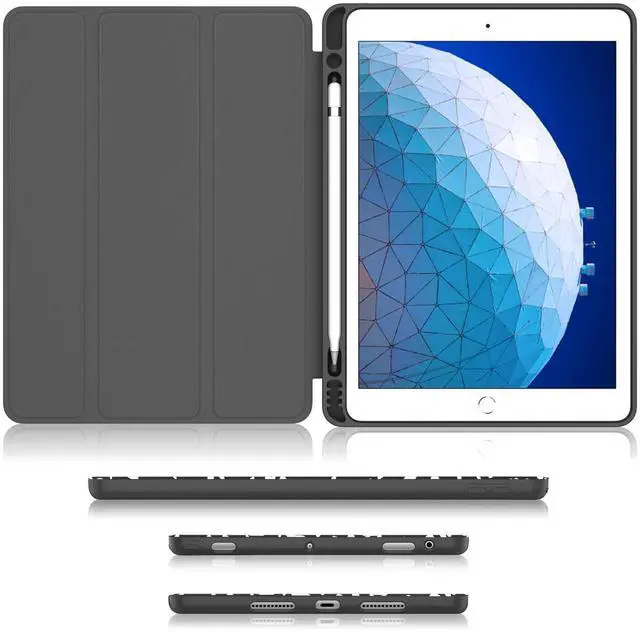 Soke for iPad Air 3 Case 2019/ iPad Pro 10.5 Case with Built-in Pencil HolderCompatibilityExclusively designed for the Newest Apple iPad Air 10.5 2019 Released & Apple iPad Pro 10.5 2017 ReleasedShockproof ProtectionSoft TPU back shell protect your iPad Air/Pro 10.5 from shocks, drops and impacts. Ultra Slim & LightweightMinimal Bulk, Minimalism Style, Great for Carry AroundPrecise CutoutsPrecise cutouts allow full access to all features (buttons, speakers, cameras)Auto Wake/SleepProvides auto sleep/wake function with built-in magnetic stripViewing & Typing Stand ModeMagnetic cover easily transforms the case into viewing and typing standPremium MaterialPU leather case with TPU edge offers strong protectionHeat DissipationInner back honeycomb pattern design greatly enhances heat transferAccurate DesignSnug and secure fit for your iPad, Pencil and Lightning charging adapterColor ChoiceAvailable in a variety of colorsService24 Month Online Service, 7/24 customer support