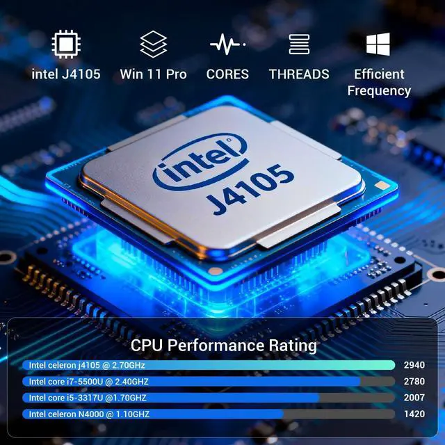 Supports Linux and Win11/10Micro PC win 11 equipped with Celeron J4105 (2GHz to 2.7GH z) processor, supports Win 11 Pro OS, supports Linux, Ubuntu as well. This portable and powerful fanless mini computer is a great helper for your business, office, entertainment, classroom, conference room, industrial IOT applications, home and more ^^ Low-noise fanless design and PC materialMini PC fanless has a special cooling system and outer texture design (efficient heat dissipation) to simulate overheating, no fan no noise. Provides a quiet and stable computer environment when using, portable PC supports 7/24 hours operation ^^ USB-C and multiple interfacesDesktop mini PC stick Win 11 Pro equipped with 1 x USB-C (wider compatibility), 2 x USB 3.0 ports, TF card reader, 1 x HDMI 2.0 ports, 1 x Gigabit LAN port, 1 x 3.5 mm audio jack, you can connect to multiple devices such as projector, NAS, monitor, keyboard mouse, etc.