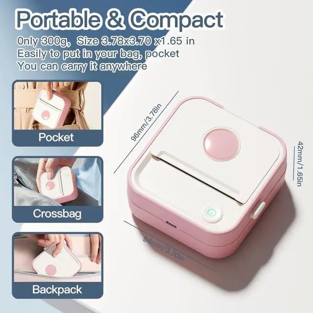USER-FRIENDLY: The mini pocket printer is compatible with IOS & Android phones /tablets via bluetooth connection.