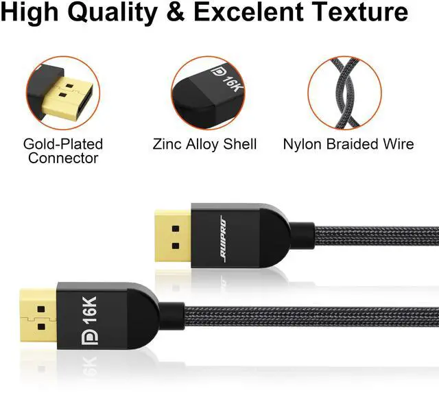 Universal Compatibility: Compatible with a variety of display port interface devices, Dell, HP, LG, Samsung, ASUS, Acer, etc. Supports DP, DP++, and DisplayPort++. This displayport cable is essential for delivering optimal performance and quality for ultra-high-definition content on monitors, graphics cards, and computers. The 16K DisplayPort cable is backward compatible 4K and 8K ^^