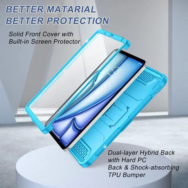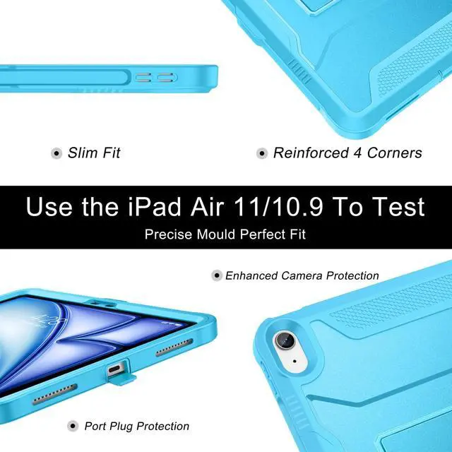 Generation 2020 (Model number: A2316, A2324, A2325, A2072). Please kindly check the model number A*** at the back of the tablet or Setting before purchase ^^ Rugged Armor Shockproof ProtectionMulti-layered hard PC back and flexible TPU bumper provide your iPad Air 11 and iPad Air 5/4 strong protection against drops, bumps, and impacts, also easy to install ^^ Built-in Screen ProtectorPrevents your New Apple iPad Air 11 Inch 7th/6th Gen & iPad Air 10.9 Inch 5th/4th generation screen from scratches without compromising sensitivity and provides full protection ^^ Precise cutoutsPrecise cutouts and design allow easy access to all ports, sensors, speakers, cameras without removing the case. Fully supports Pencil Pro/2nd Gen Pencil magnetic charging and Pencil (USB-C) wireless attach to keep your Pencil securely ^^ Built-in KickStandThis case for iPad Air 11 Inch & iPad Air 5th/4th Generation 10.9 Inch functional pop-out kickstand with dual stand angles for easily enjoying movies and better working. FREE YOUR HANDS