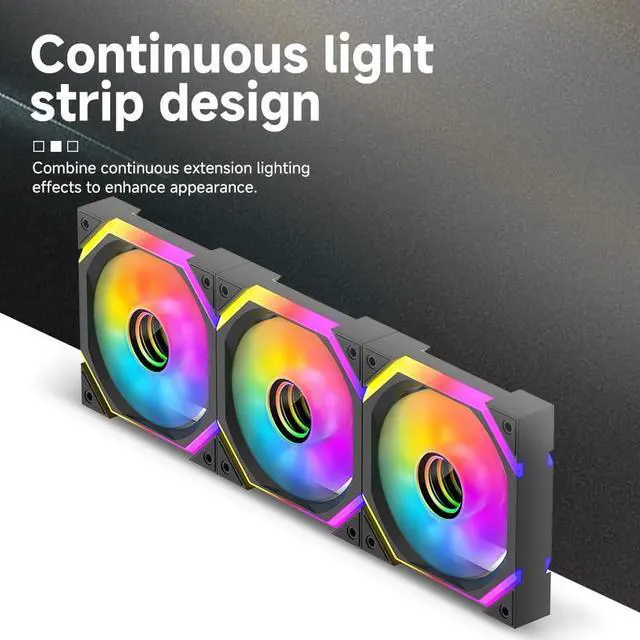 Dual-track RGB LED Light Strip: It adopts a dual-track lighting design and is equipped with high-brightness light beads, capable of presenting translucent yet vibrant RGB lighting effects, thus creating a cool atmosphere for the chassis ^^ High wind and low noise fan blades Balanced 9 blade design, increase the output wind pressure Improve the efficiency of heat dissipation, easily blow away the excess heat of the host, 1000~1650RPM; 29DBA ^^ The fan speed is 800-1600 10%, with an air volume of 58.36 CFM and a fan pressure of 2.07, ensuring cooling efficiency. The operating noise is only 29 dBA, balancing quietness and cooling performance ^^ Hydraulic bearing Ensure high speed operation, reduce wear, reduce noise, improve service life The bottom of the fan has a magnetic suction, which attracts the steel column on the fan page and has a strong suction force ^^ Double-sided shock pad The silicone cushioning pad can effectively reduce the noise caused by resonance when installed on the chassis ^^