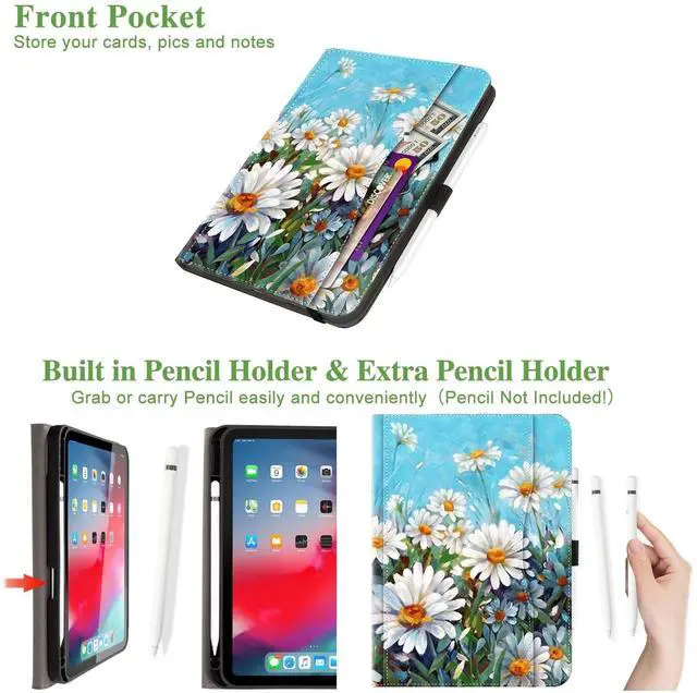 Pencil Holders: Built-in Pencil Holder and Side Elastic Band Pencil Holder, this design to grab or carry Pencil easily and conveniently (Pencil is NOT Included! ); The Front Pocket on the front for you to store your cards, pics and notes. ^^ Safety Screen Protection Strap & Internal Hand Strap-- Safety