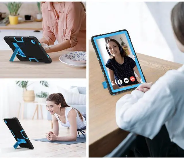Functional Kickstand: this shockproof tablet case has a built-in sturdy kickstand, you can adjust for optimal viewing and typing positions based on your needs. Hassle free to watch movies, videos or make video calls with other people in a landscape mode, convenient to operate when doing the work, too. Simple and practical for your daily use ^^ The Case back is non-slip, providing a good grip for easy carrying. Raised Lips provide extra protection for the screen and camera. Port covers prevent dust and debris from accumulatin ^^ It's easy to access all buttons, speakers, cameras and sensors through the precisely-cut openings