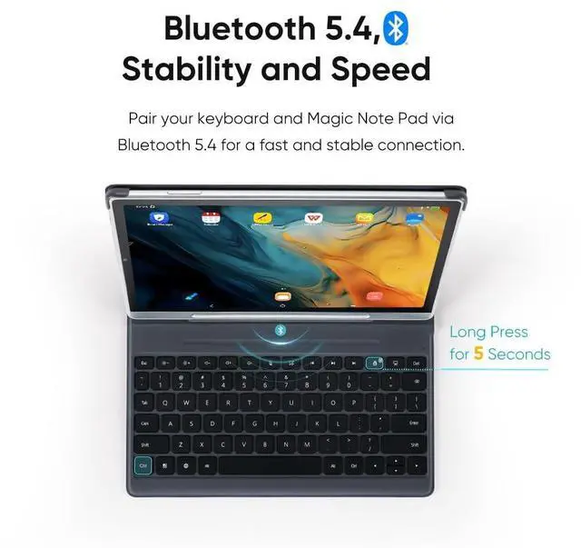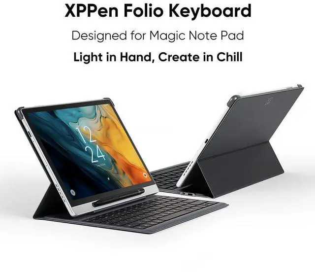Stand & Cover: More than just a keyboard, this is your complete workstation solution. The premium leather case provides full protection for your Magic Note Pad. The integrated stand offers two customizable viewing angles, perfect for switching between a comfortable typing mode and an optimal drawing/writing posture