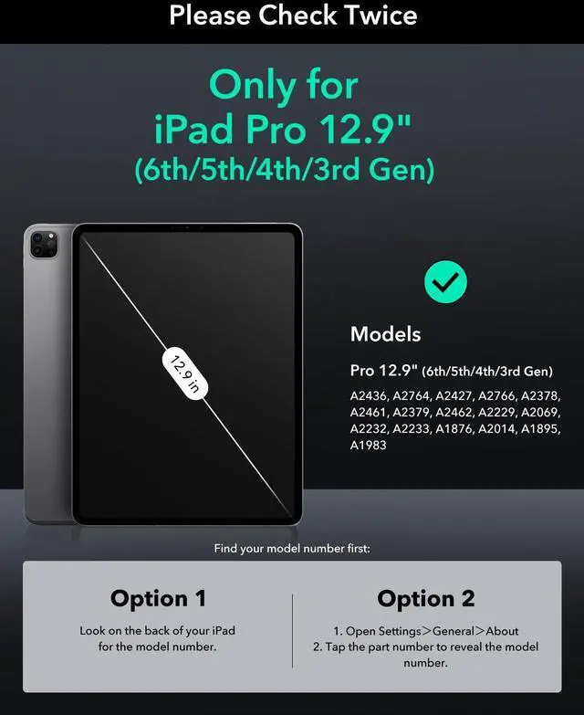 Compatibility: only compatible with iPad Pro 12.9 (2022/2021/2020/2018); models A2764, A2437, A2436, A2766, A2378, A2461, A2379, A2462, A2229, A2069, A2232, A2233, A1876, A2014, A1895, A1893 ^^
