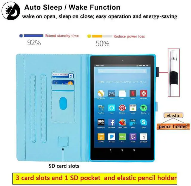 Support Auto Wake/Sleep: The fire hd 8 smart case has sleep/wake function, it helps conserve battery life.. 4.
