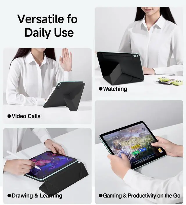 ^^ RoHS Environmental Certification: Certified under the EU's RoHS environmental standards, strictly limiting hazardous substance content. Made from safe, odor-free materials featuring premium leather-like fabric and high-end solvent-free stain-resistant coating. Ideal for children, students, and office workers requiring long-term use, ensuring peace of mind even during extended handling or skin contact. ^^ Multi-Function Stand & Smart Sleep Mode: Easily transforms into a sturdy stand with foldable and adjustable angles, offering versatile viewing and writing positions. Supports landscape and portrait rotation for hands-free entertainment and gaming relaxation anytime, anywhere. Fully compatible with Apple Pencil magnetic pairingno need to remove the case for connection or storage. Effortlessly use Apple Pencil for reading and note-taking.