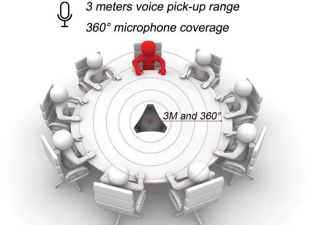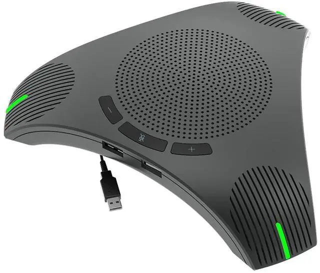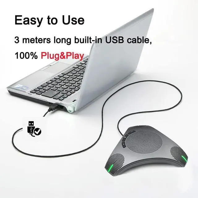 Windows/macOS: Simply plug Octopus into your computer's USB, launch your favorite conference application and start your meeting. ^^ USB speaker delivers clear and powerful sound, voice pickup up to 11.5 ft. DSP technology provides natural voice sound and echo reduction. Minimizes noises like air conditioning, mouse, keyboard in conference rooms, to ensure an excellent conference experience. ^^ The Octopus's integrated USB Hub makes it easy to connect the mouse, keyboard and USB stick. ^^ The LED indicators are intuitive and will guide you very easily in handling your device. ^^ Volume control +/- and Mute button to mute your microphone in one click. ^^ The included 10 ft USB cable is suitable for most meeting rooms