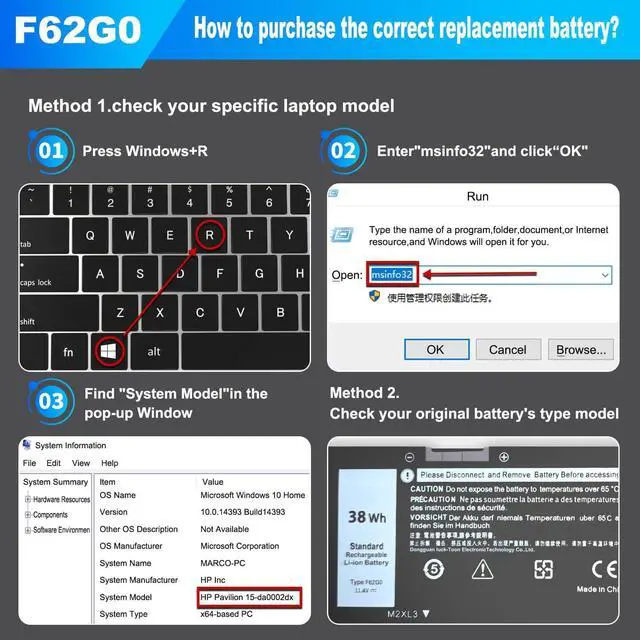 Type: F62G0, Capacity; 38Wh 3300mAh