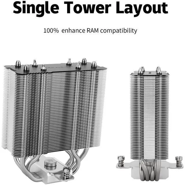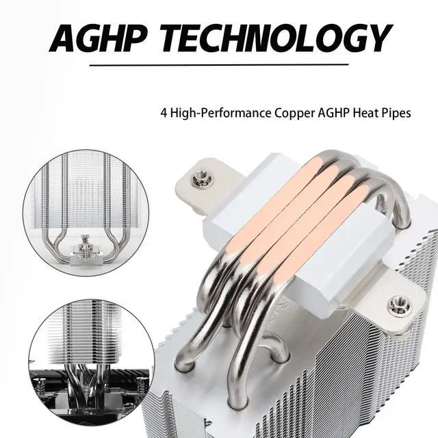 Air flow: 66.17CFM (MAX); Noise Level 25.6 dB (A), the fan pairs efficient cool with low-noise-level, providing you an environment with both efficient cool and true quietness ^^ AGHP technique46mm heat pipes apply AGHP technique, Solve the Inverse gravity effect caused by vertical / horizontal orientation, cpu cooler TDP is 125 to 225W. Up to 20000 hours of industrial service life, S-FDB bearings ensure long service life of air-cooler radiators. UL class a safety insulation low-grade, industrial strength PBT + PC material to create high-quality products for you. The height is 148mm, Suitable for medium-sized computer case ^^ CompatibilityThe CPU cooler