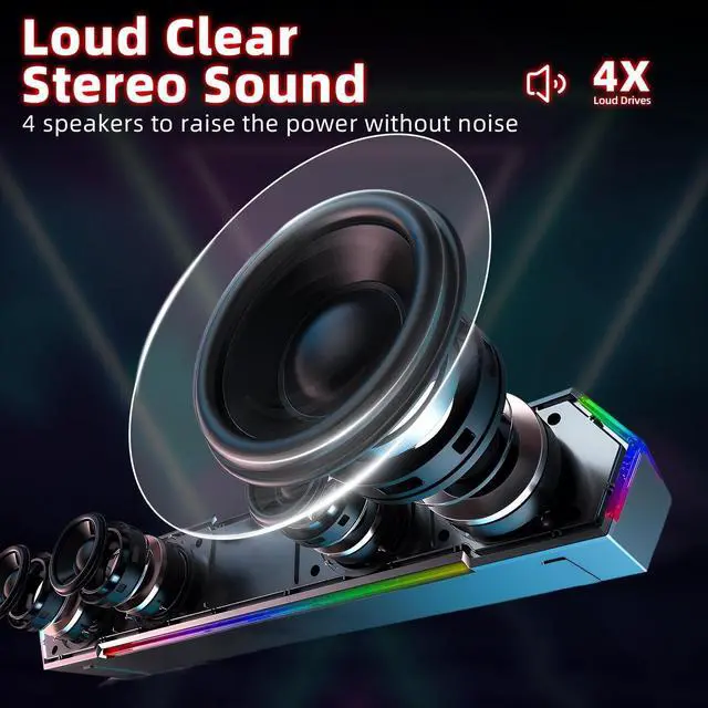 ^^ Immersive Stereo Sound: Equipped with two 5W RMS drivers delivering a total of 10W power. Experience clear, rich stereo sound with a wide frequency range of 60Hz-20KHz for enhanced gaming, music, and movies.