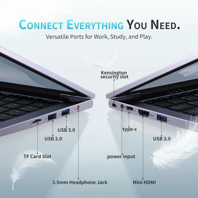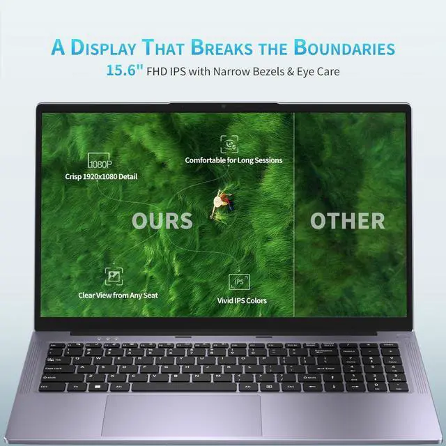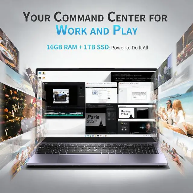 16GB RAM & 1TB SSD for MultitaskingSmoothly handle work and entertainment with 16GB RAM and a 1TB SSD. This laptop computer offers fast performance and ample storage for all your files, making multitasking effortless. ^^ 15.6" FHD IPS Display & Stable PerformanceA vibrant 15.6 -inch FHD IPS screen offers wide-viewing angles. Powered by a 4-core processor, this Win laptop delivers reliable performance for everyday tasks and streaming. ^^ Versatile Ports & Flexible 180 DesignConnect with ease using USB 3.0, Mini HDMI, and a TF card slot. The 180 hinge and lightweight design make this portable laptop adaptable for presentations, study, or movies.